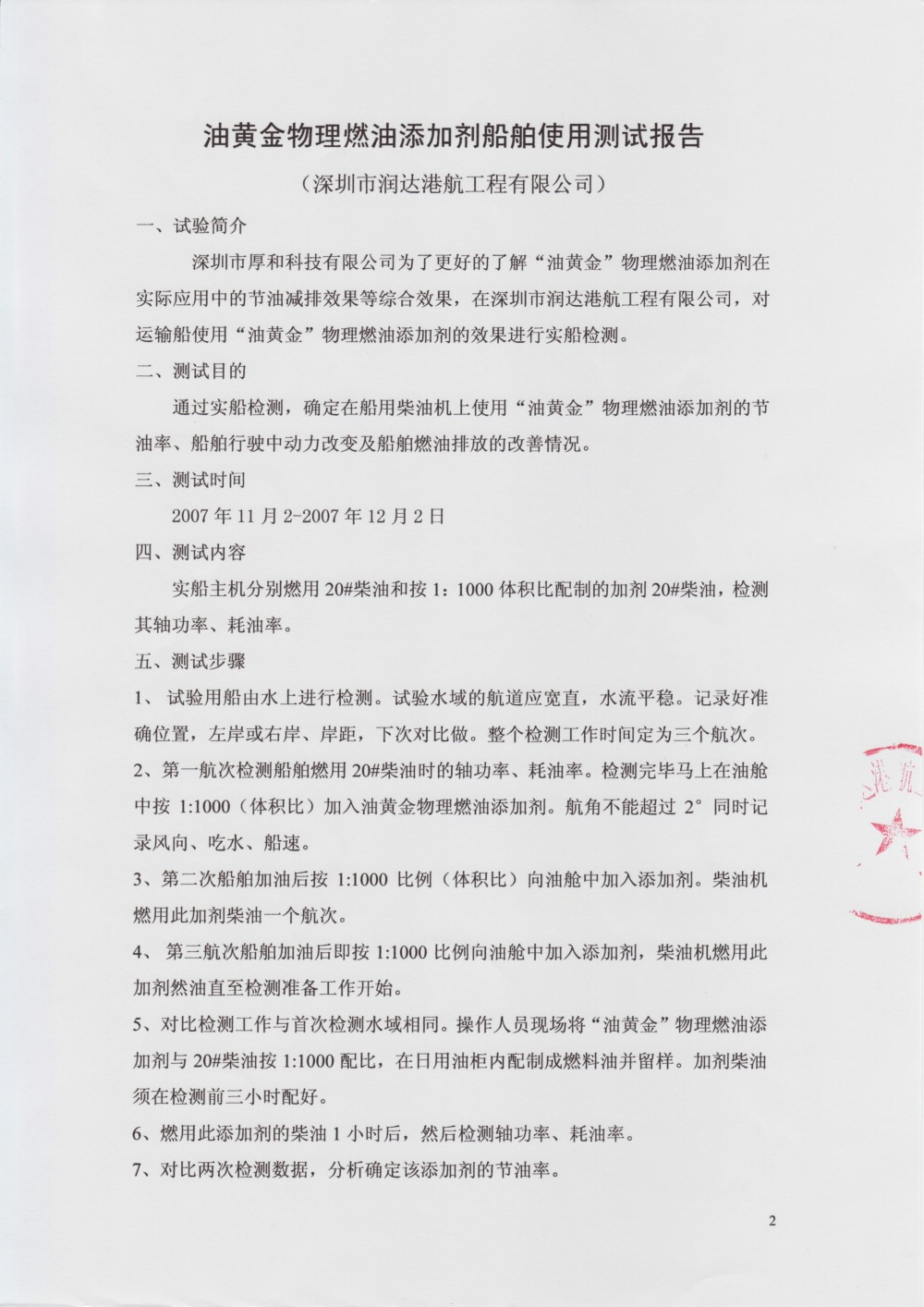 2、提升动力:解决船舶因使用非标、劣质走私燃油而出现的提速缓慢等问题,使低品质油达到高品质油的燃烧使用效果,提高船舶动力性能,节省时间成本。