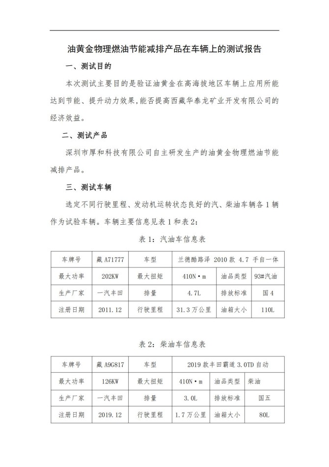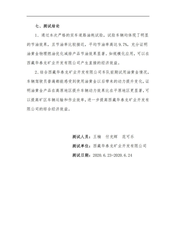 西藏华泰龙矿业开发有限公司高原实车测试报告(2020)